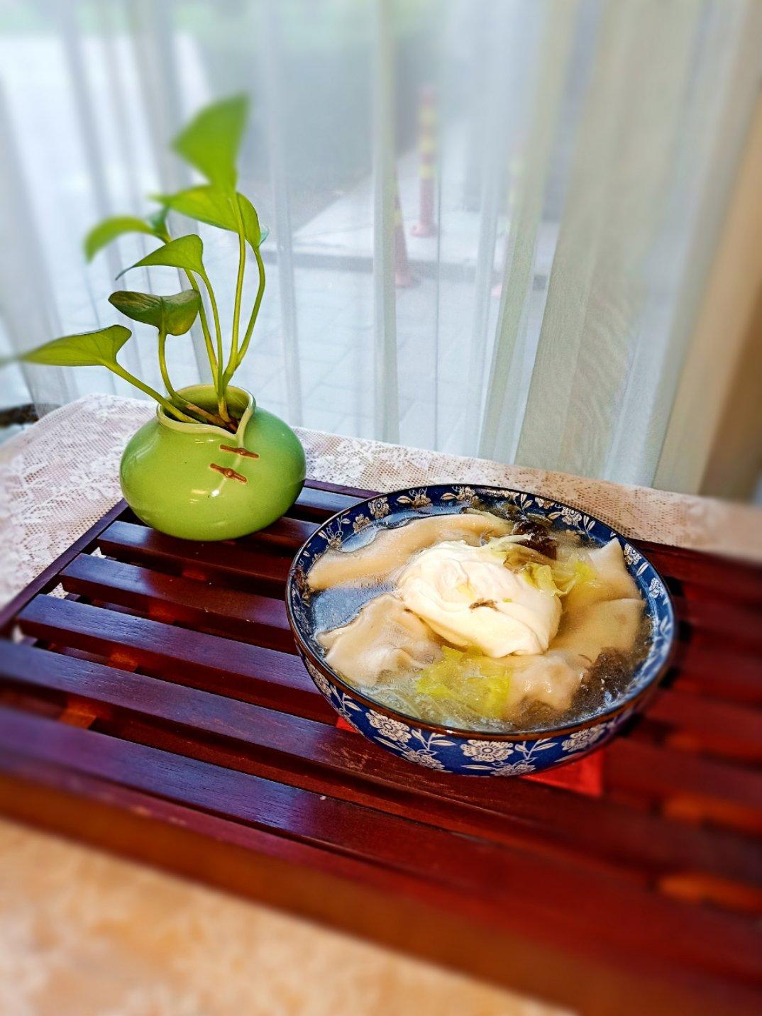 周六早餐:生菜+紫菜馄饨+荷包蛋