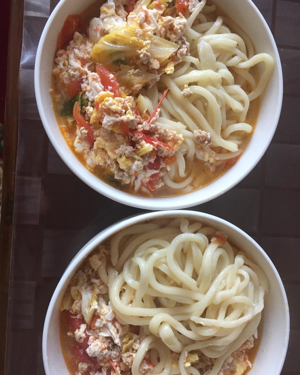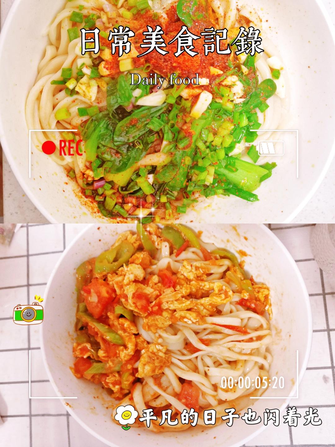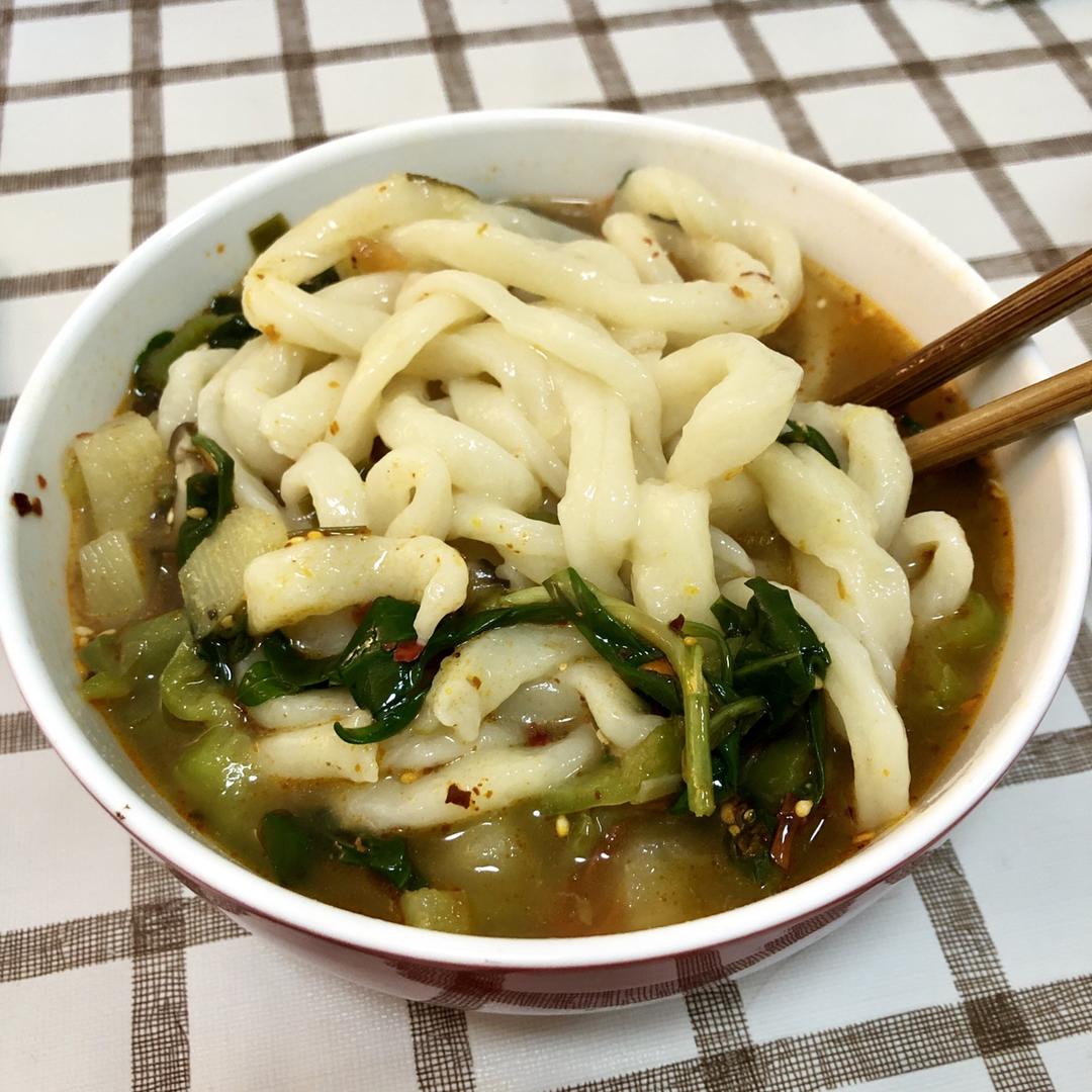 手工拉条子,加自己做的臊子、油泼辣子。