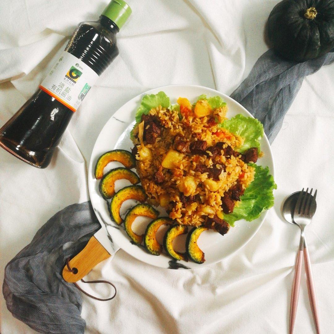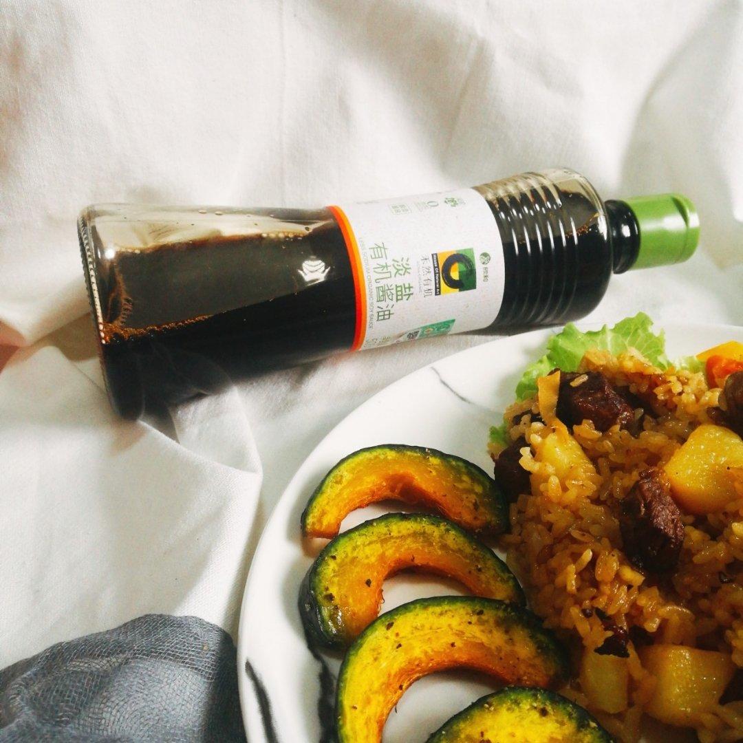 烤南瓜配时蔬牛腩焖饭