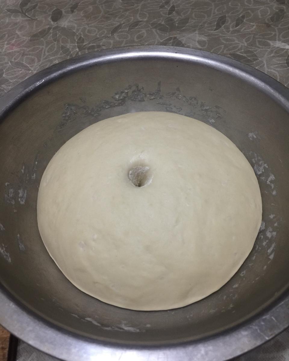 发哮1个半小时后,面团有点烯,赶皮不好赶,包起陷来很软,不知道是发哮过时间那,还是发面时水加多那,将就吧,第一次弄没经验