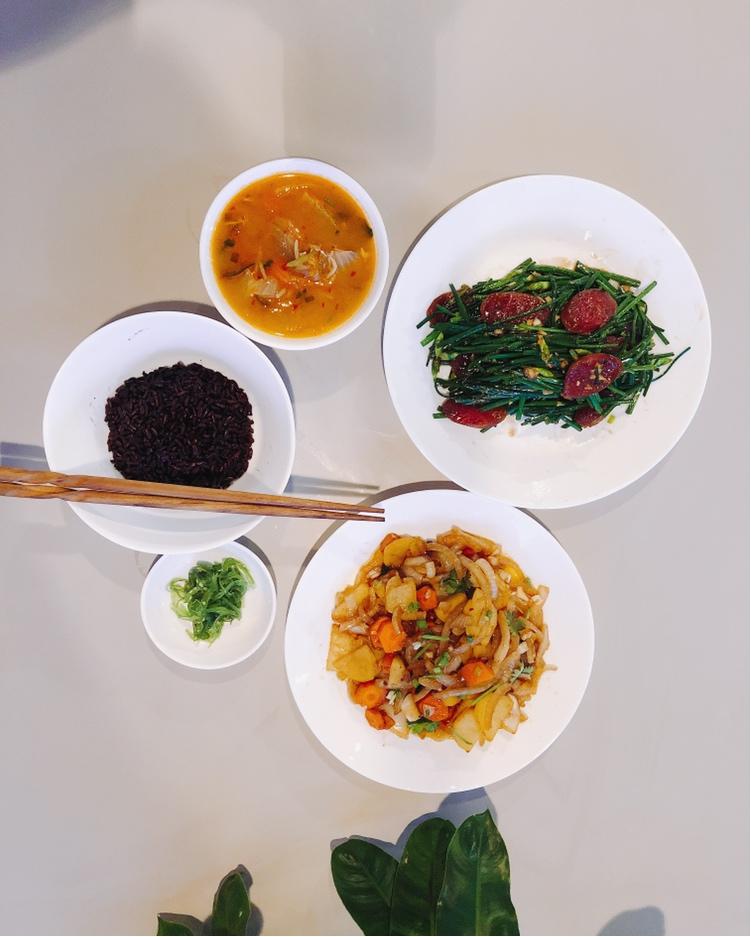 最近超级怀念学校的辣白菜炒饭,于是买了辣白菜~结果没有剩饭,就煮了一锅😂部队汤?