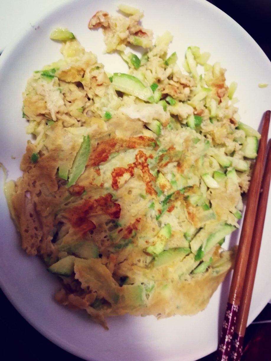 早上的西葫芦全麦蛋饼,平底锅煎的,棒棒哒!