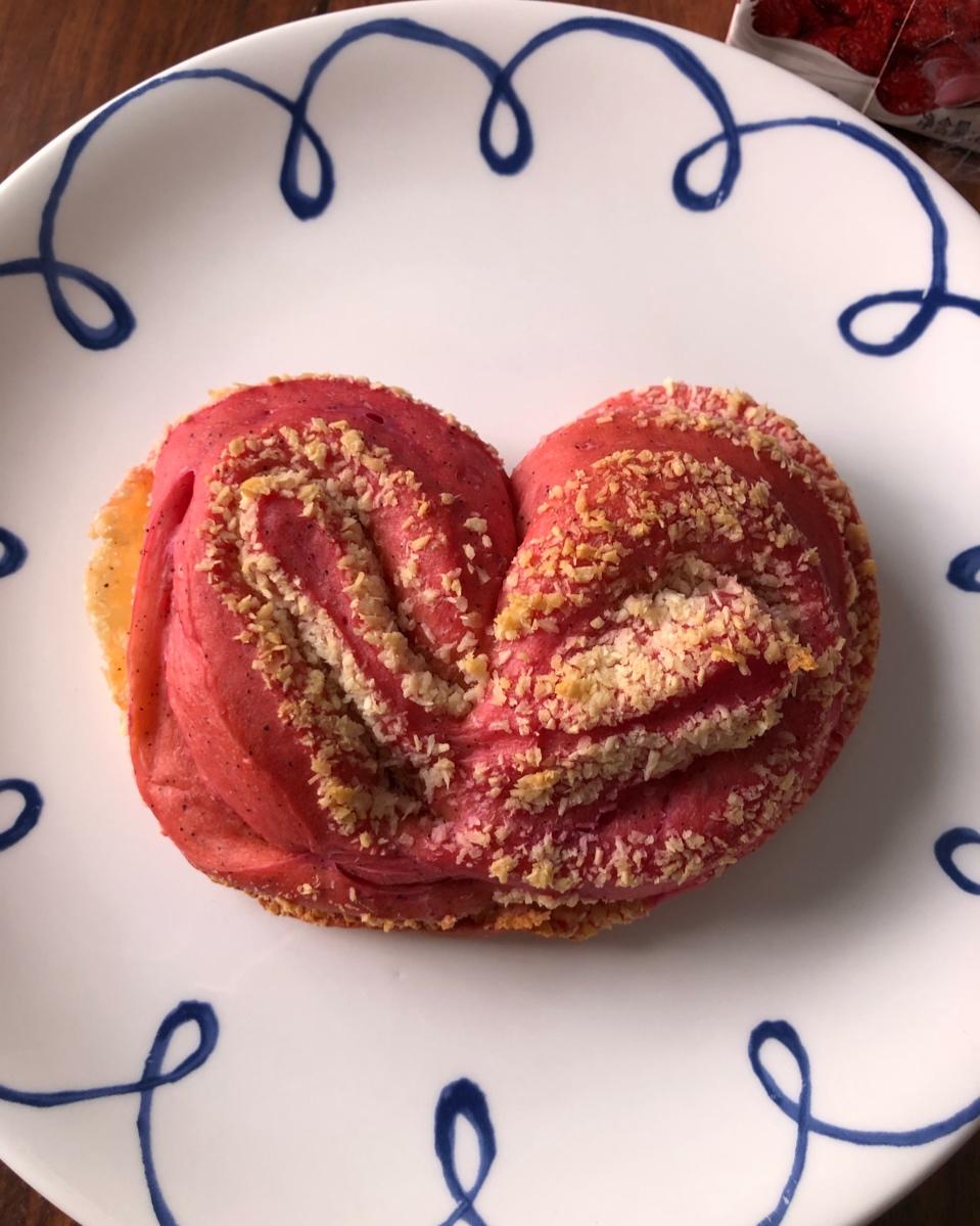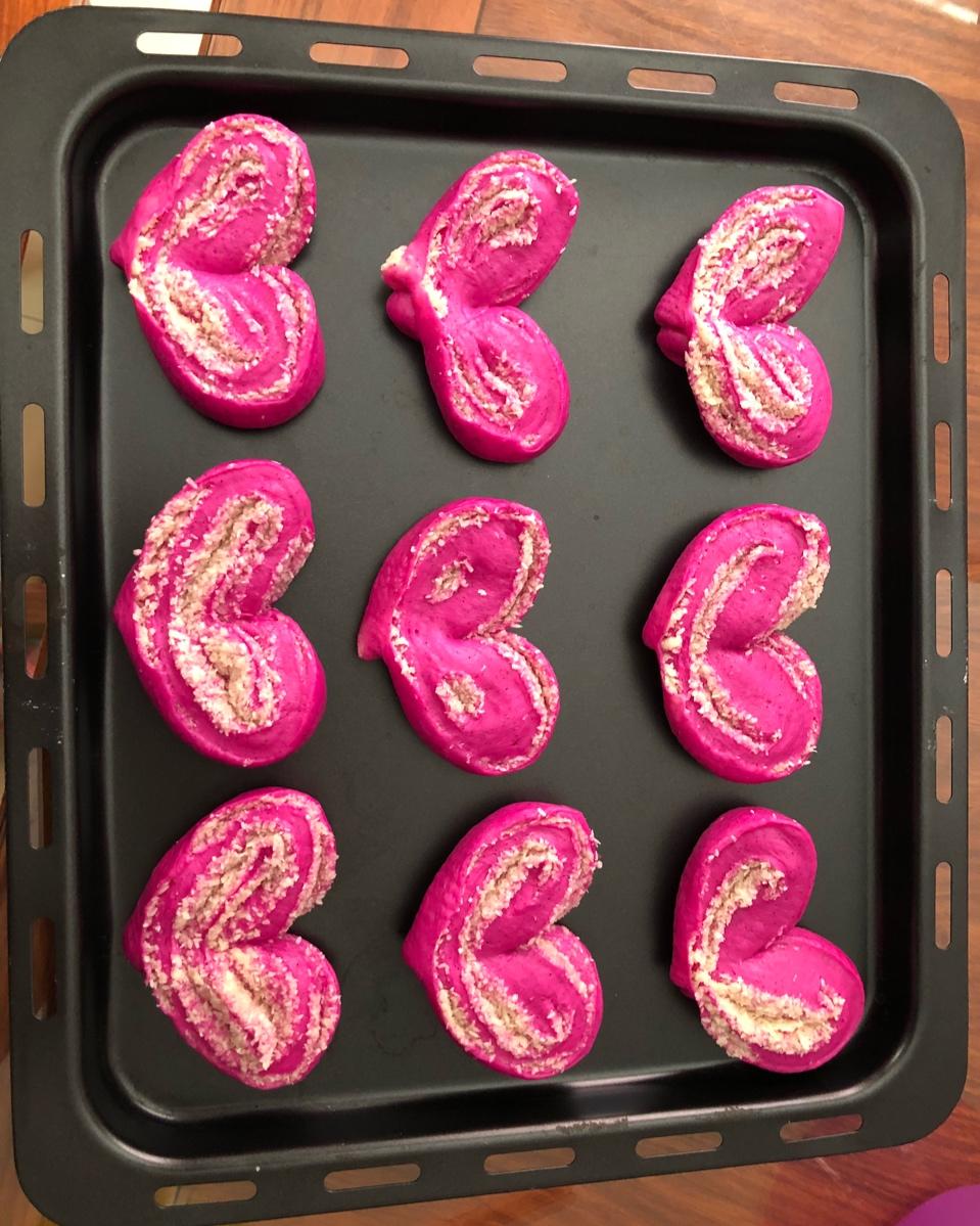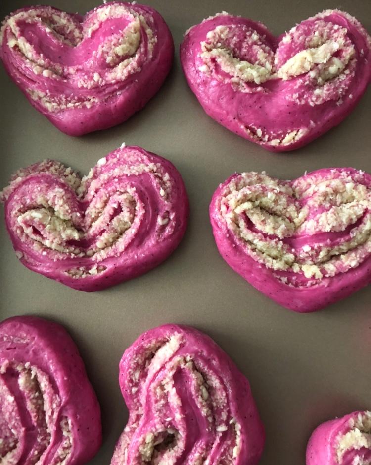 #心形火龙果椰蓉面包#