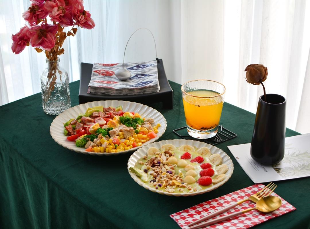 考伯沙拉➕牛油果益生菌奶昔🧚♀️➕蜂蜜柠檬百香果茶