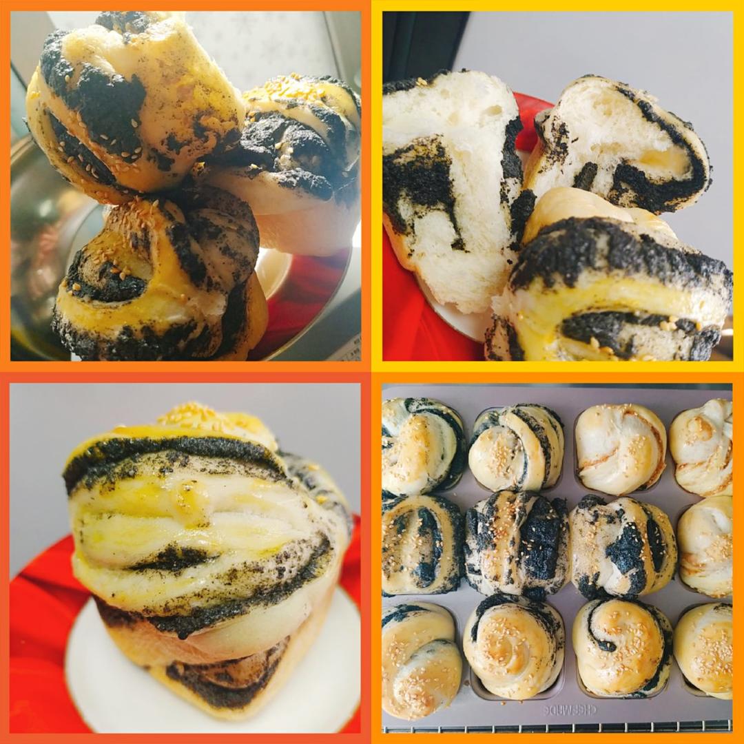脏脏的黑芝麻面包,好香。吃了它头发会不会变黑😊