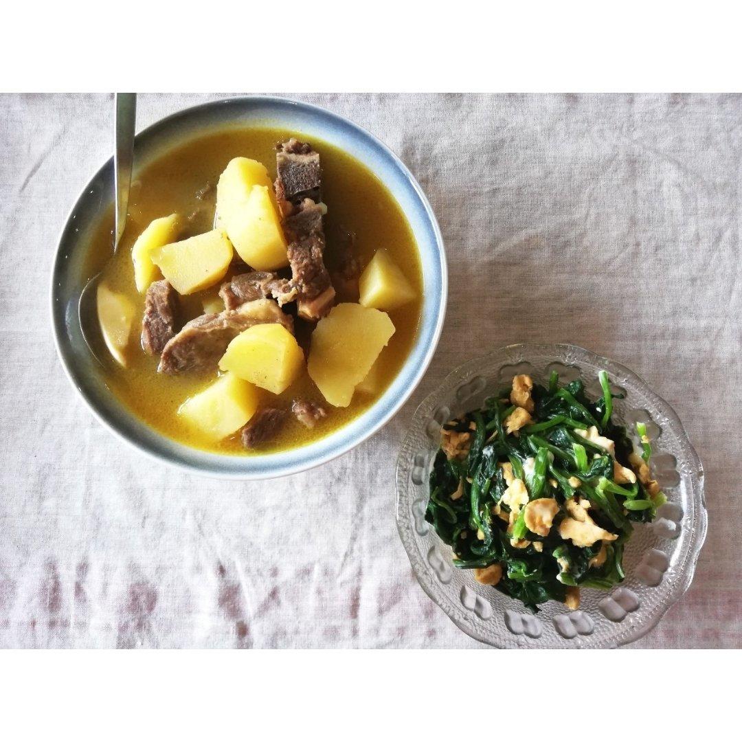 咖喱土豆羊肉 / 芝士鸡蛋炒
