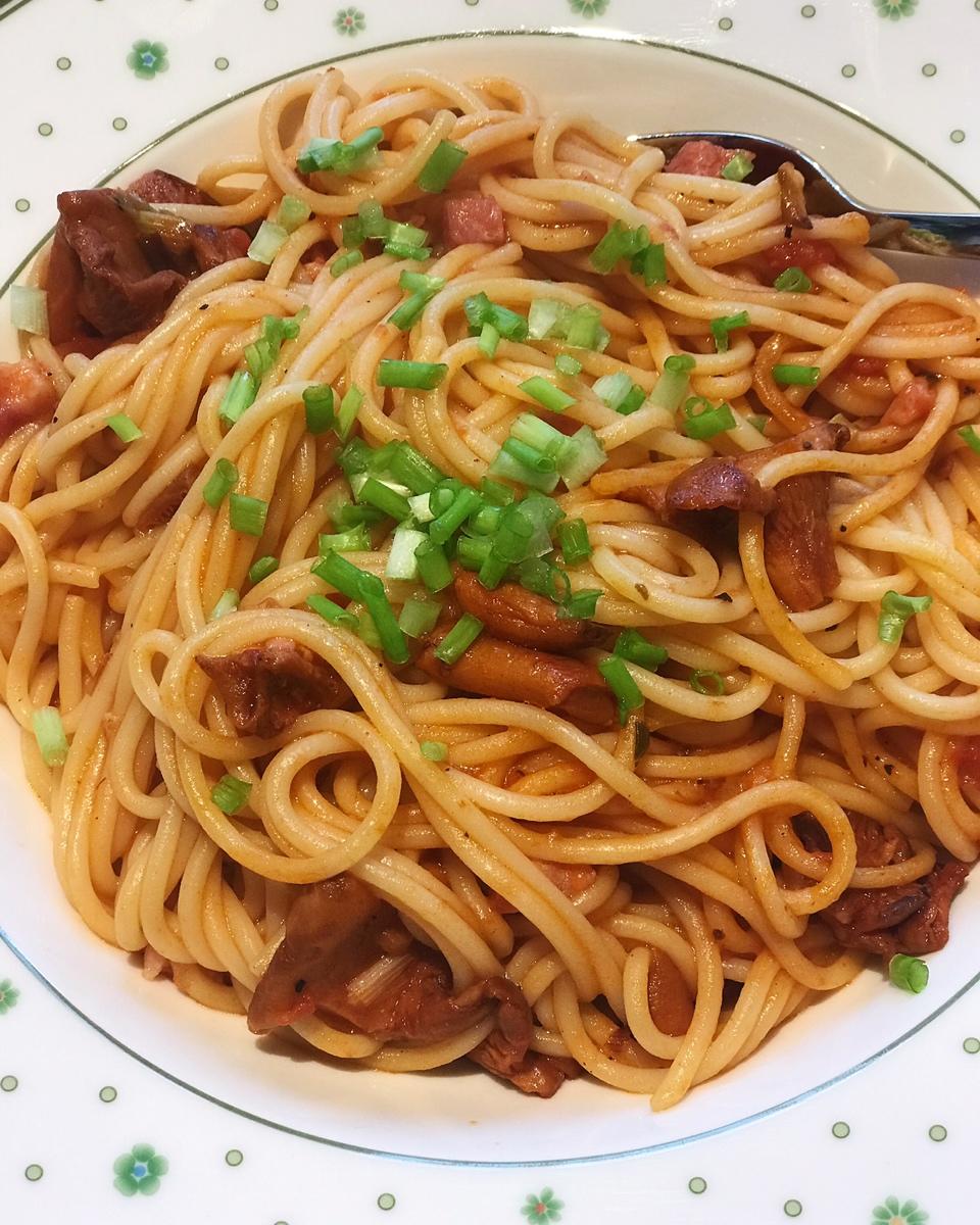烟肉煎鸡油菌茄汁意面