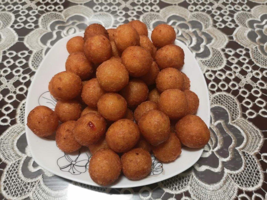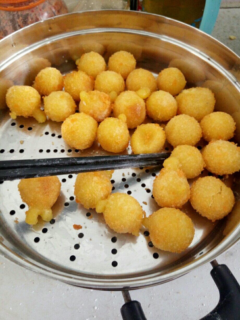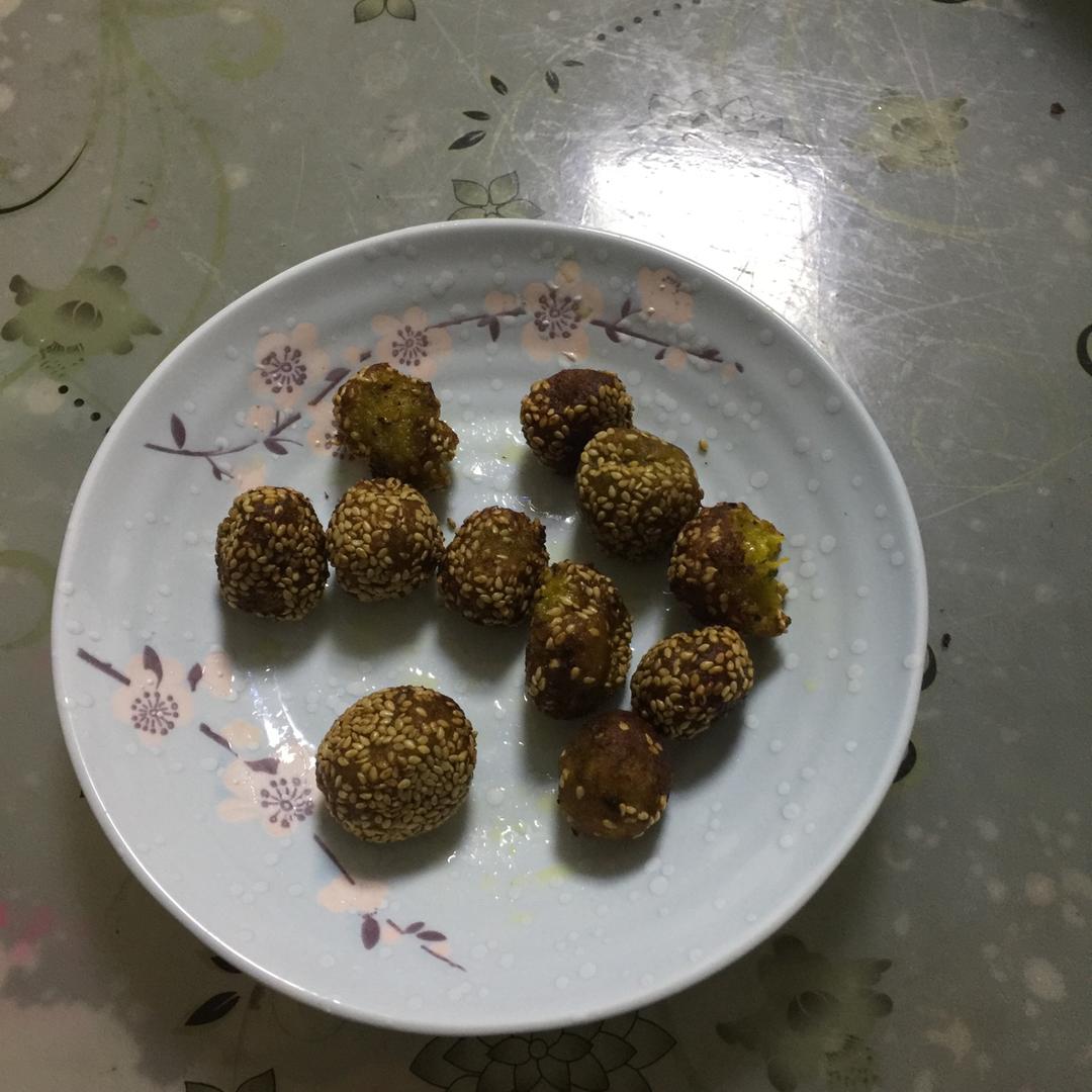 今天有一点南瓜泥,所以做了南瓜丸子,味道不错,外香脆里糯