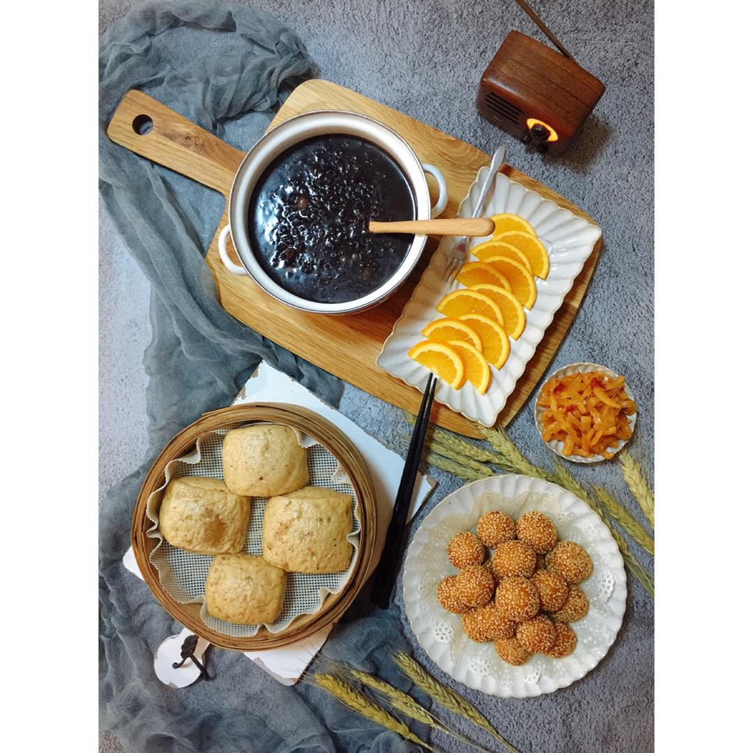 黑米粥➕南瓜小丸子➕红枣馒头➕橙子