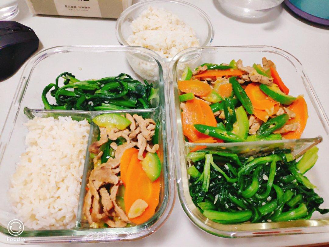 西葫芦胡萝卜炒肉,豆豉油麦菜