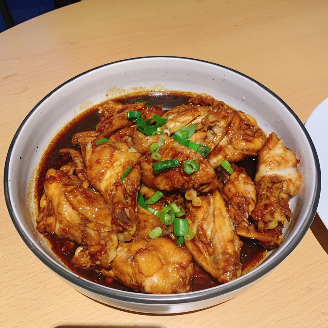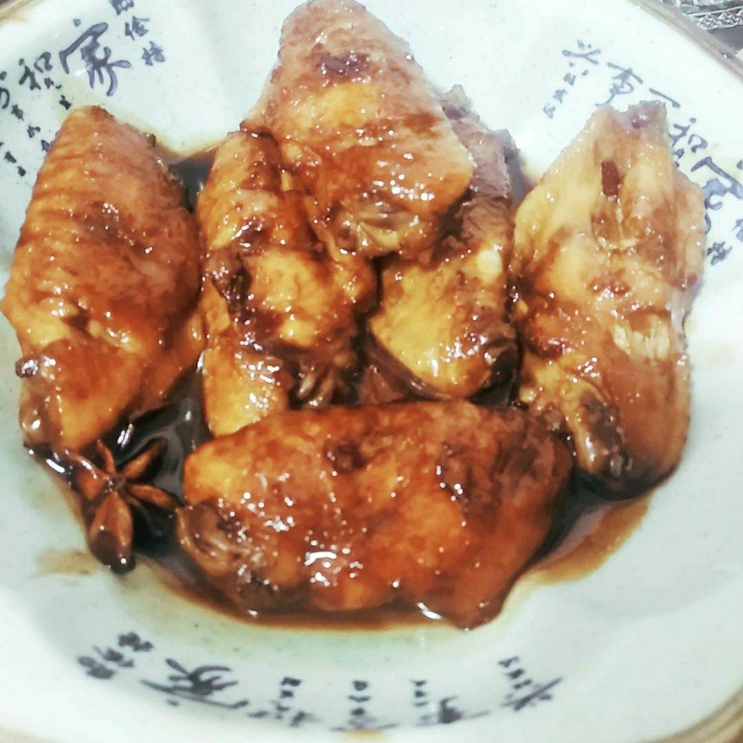 用的全翅,超级好吃!翅中不容易上色,加了一些老抽和味淋,料酒,蜂蜜。简单的美食,煲了大概30分钟。