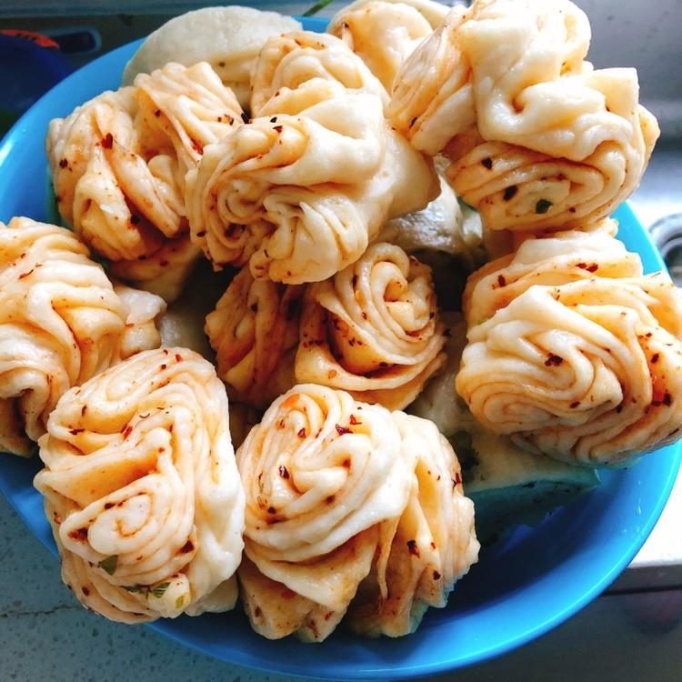 在妈妈的指导下第一次做辣花卷,我觉得这种花比筷子压一下的那种要好看😝