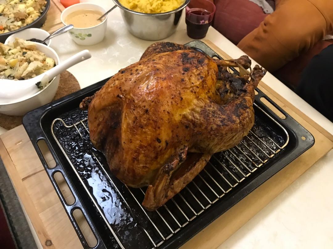 买了淘宝国产火鸡,解冻一天,去头去爪腌制晾干一晚,24号开始低温烤制半天。非常赞!