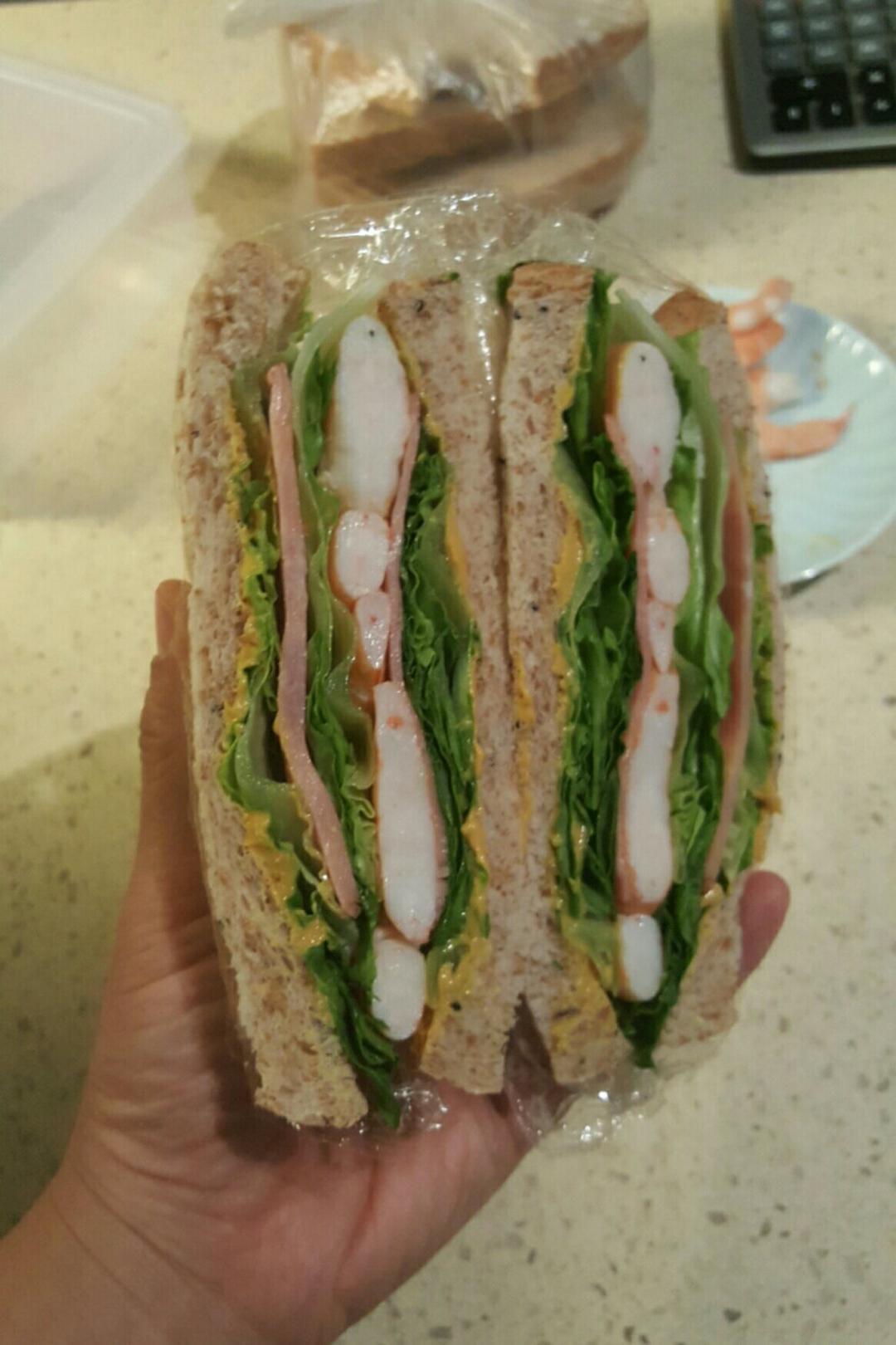 大虾火腿全麦藜麦吐司三明治