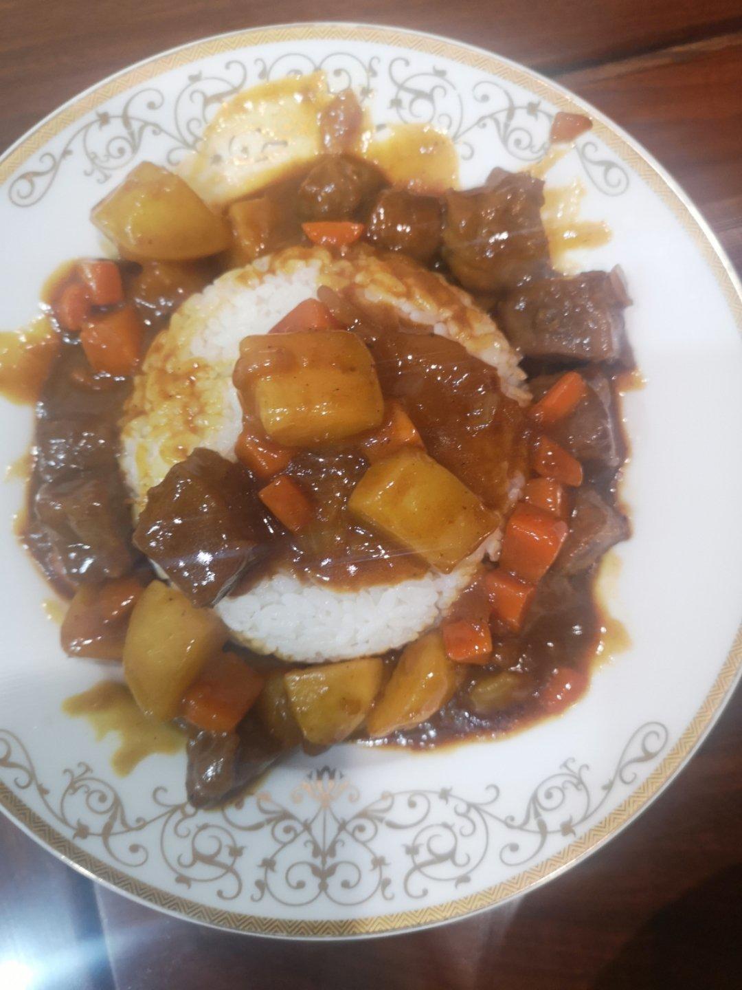 #咖喱牛肉土豆拌饭#