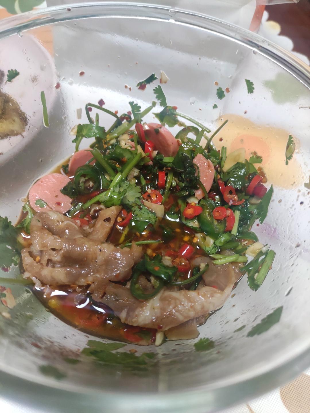 1: 酱汁:两三个蒜的蒜末 两三小包六婆辣椒面 芝麻少量 二荆条 小红米辣切段淋上热油 两勺生抽陈醋蚝油盐糖。...