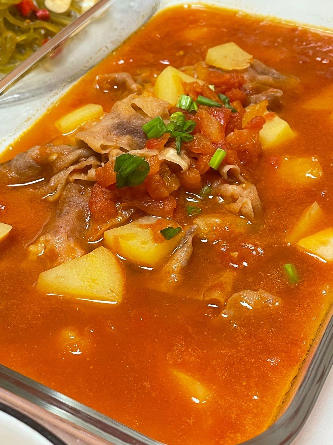 真的绝了,我三个番茄在150g肥牛半个土豆,我特意炖久点 让土豆软烂,好好吃 汤真的好喝 我没放番茄酱