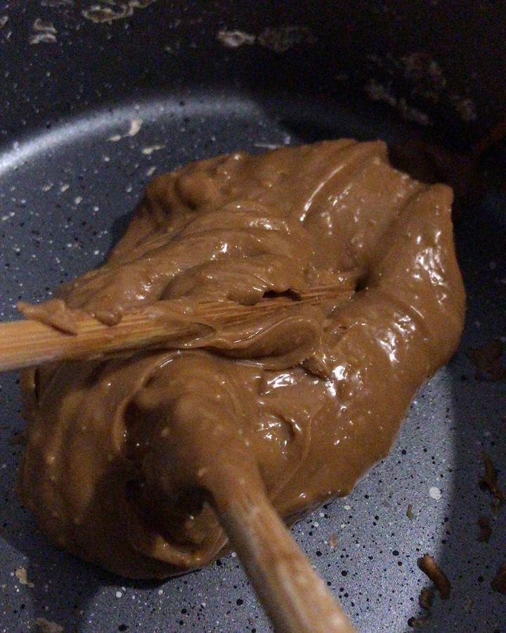 图一是关火后搅拌的,水太多了一点,然后一直加生的木薯粉揉搓揉搓,成品就比较黏,口感是挺好的。