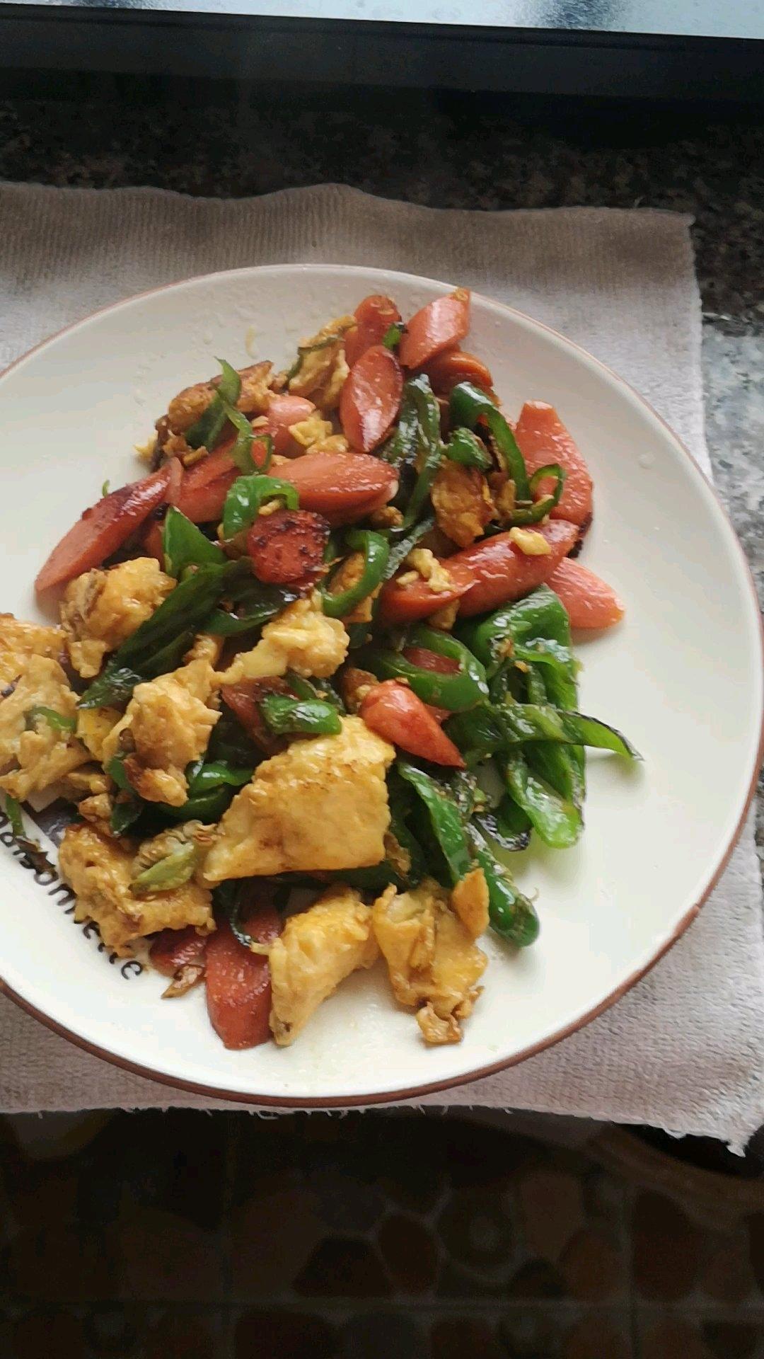 很不错哇,就是火腿肠要煎的更焦焦一点更好吃!还有就是这次青椒没断生,下次继续加油,吼吼吼