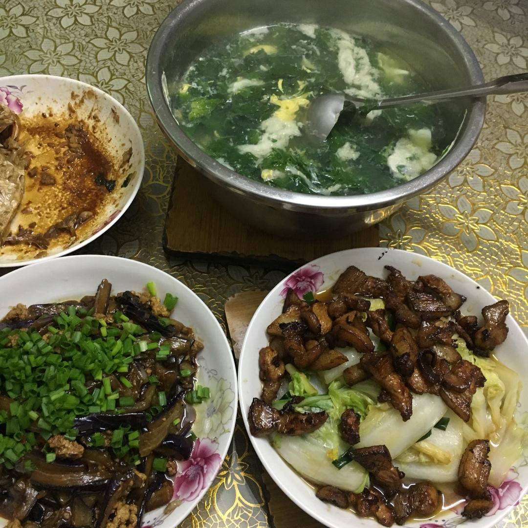 四季豆炒肉+枸杞叶蛋汤😋