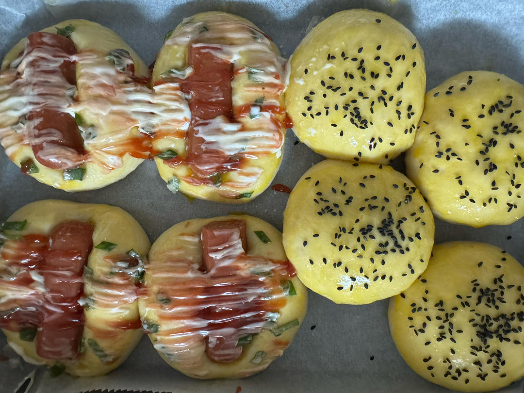 汤种+万能台式面团,目测分剂子,上火180,下火170...