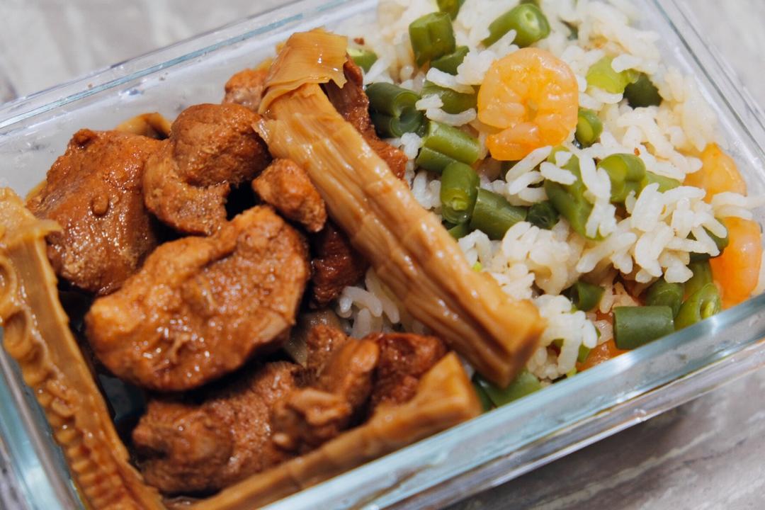 为了减肥我拿纯瘦肉做的笋烧肉,炖了五个小时终于入味了,顺便拿豆角和🦐煮了饭,有锅巴的那种,中式高蛋白高纤维减肥餐,搞定哈...