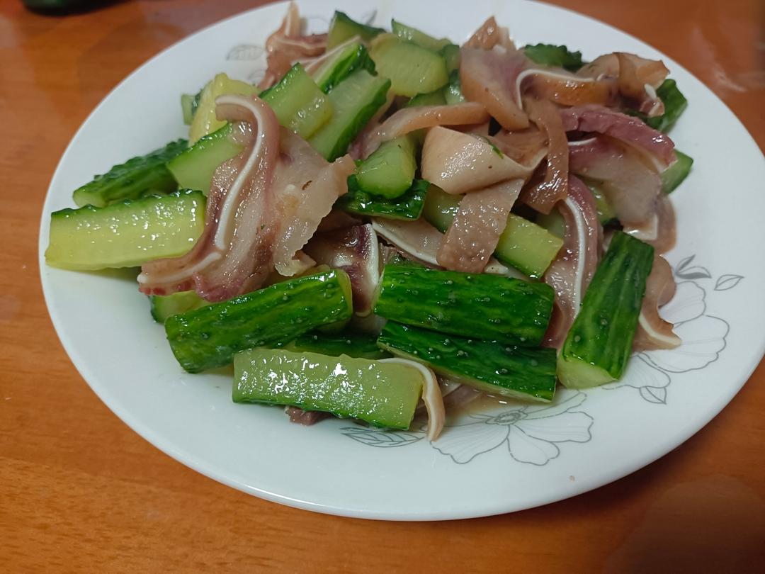 图一二:猪儿炒黄瓜&炖菜(白菜猪肉豆腐蘑菇一锅炖),冬天就是得这样吃炖菜,超级满足呀😋