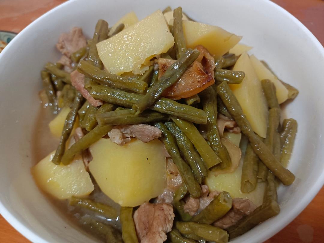 图一二:豆角土豆炖肉&小葱小煎饼