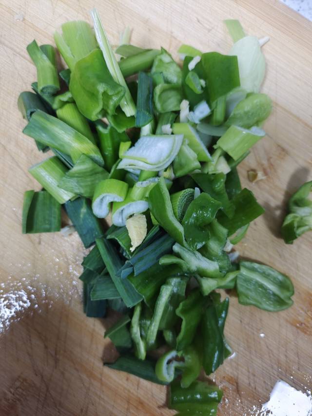 为了节省时间,我切成了细条。用冷水下锅煮了一分钟去了腥味。沥干水分,用料酒,胡椒粉,姜丝,蒜瓣,耗油腌了片刻。热油下锅爆...