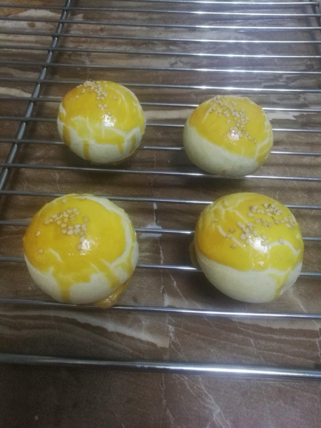 感觉面团发酵过度了,但是口感很松软,不错的方子