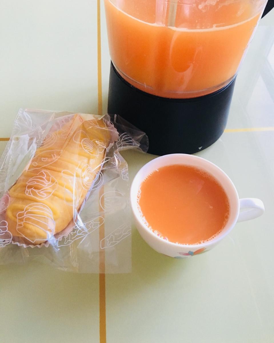胡萝卜先煮2分钟,然后和苹果榨汁