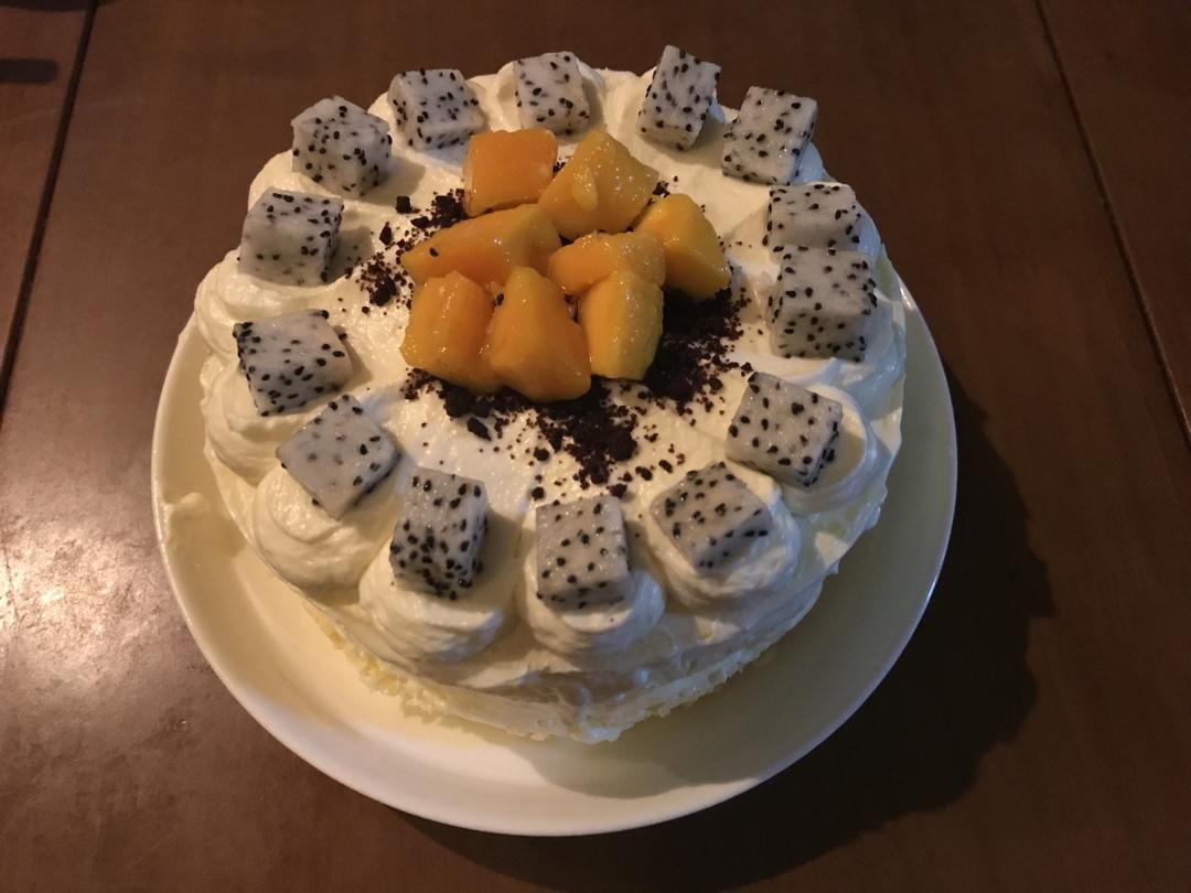 第一次奶油蛋糕,奶油打发的不够,胚子是蒸的