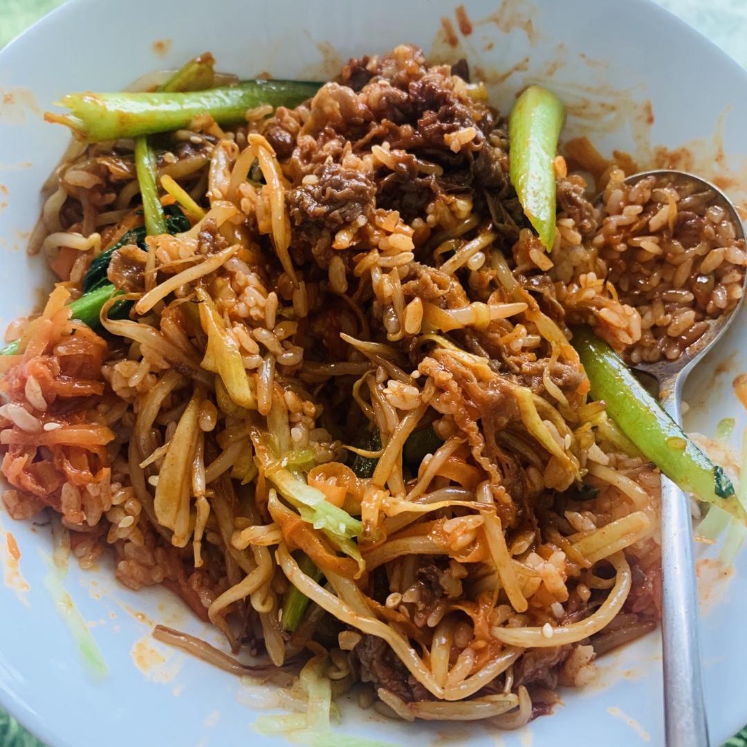 一碗拌饭营养均衡,家里的韩国辣酱不够了,加了蚝油生抽蜂蜜,一样好吃