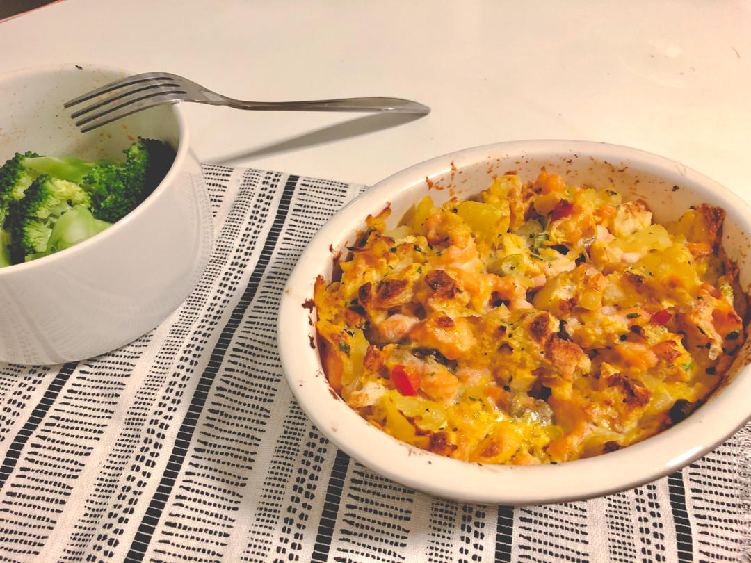 如标题。主材料:土豆、三文鱼、饼。