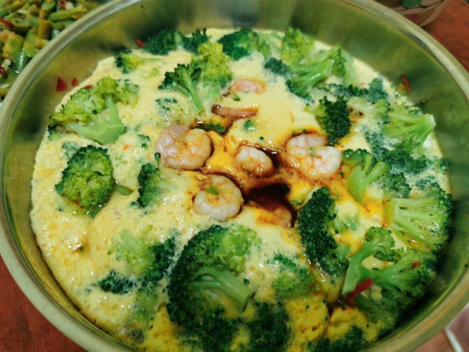 我简化了一下做法虾仁西兰花蒸蛋