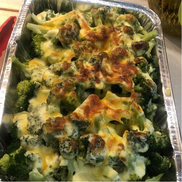 加了芝士片炒白汁,撒在上面的芝士碎好像少了点,下次多撒些!味道和卖相都杠杠的!!很适合家庭聚餐🥳🥳