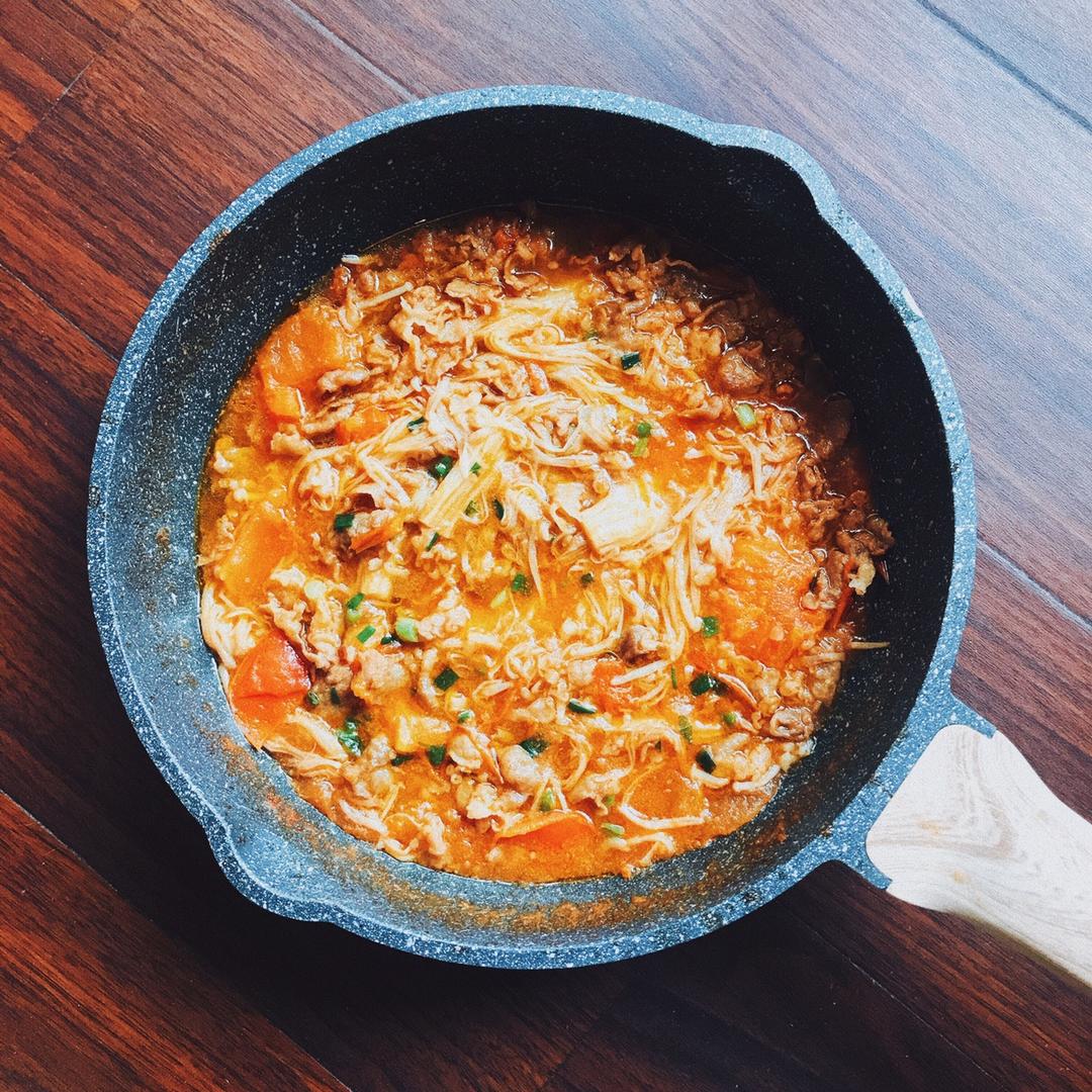很快手的番茄金针菇肥牛锅,好香~