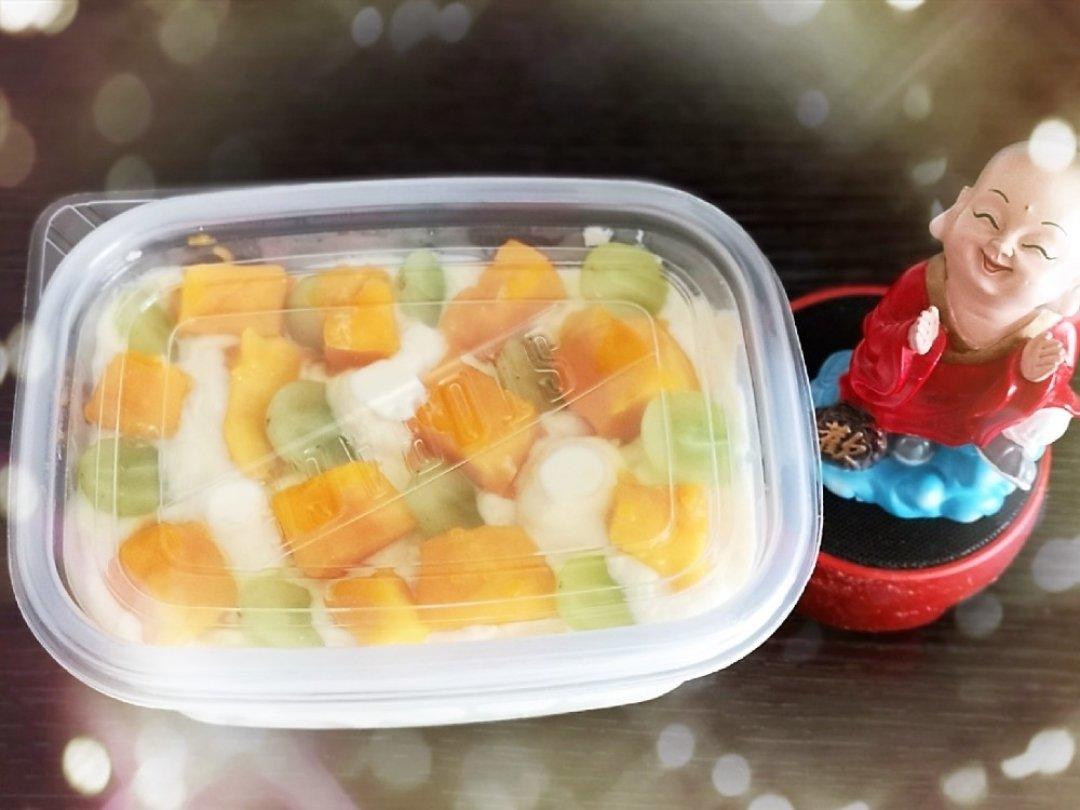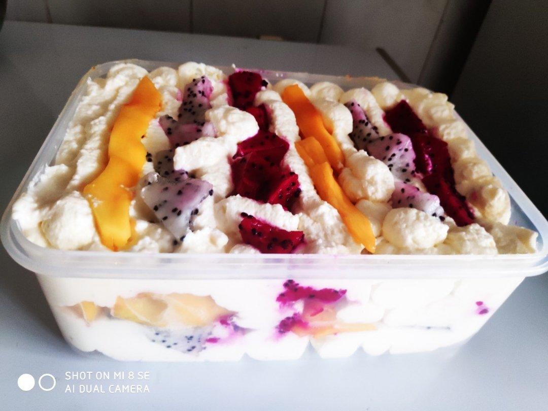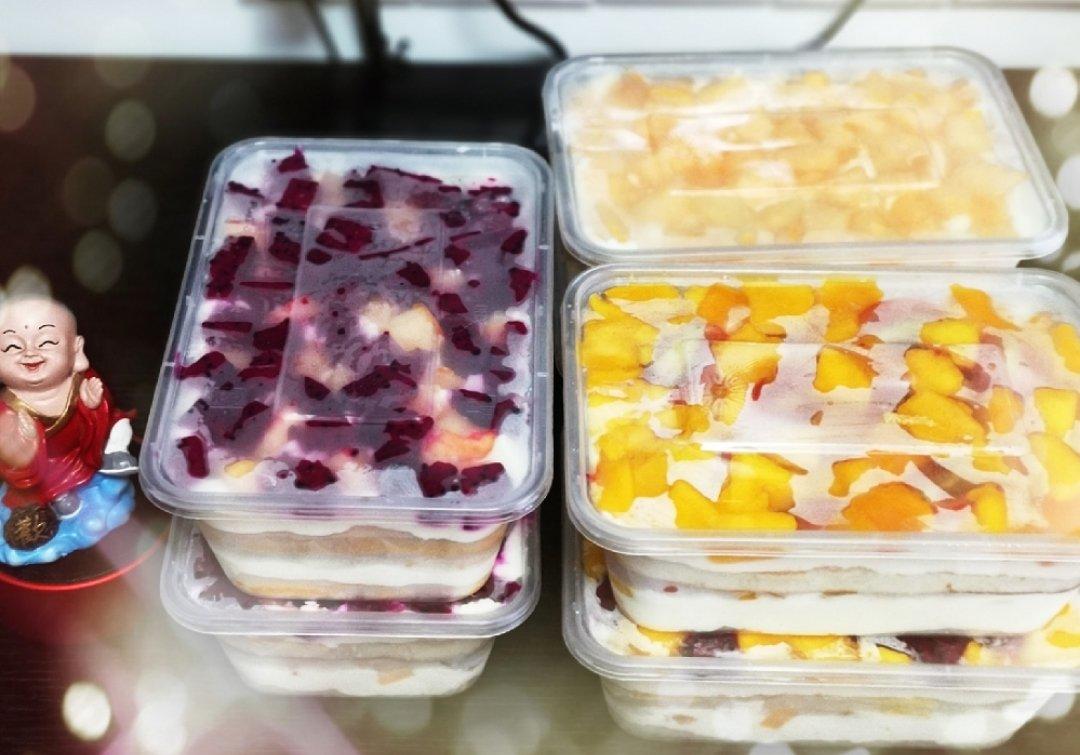 各种水果口味的盒子蛋糕,蛋糕配方基本上一样,蛋黄糊里10克糖,6克炼奶,一条匙的椰蓉。