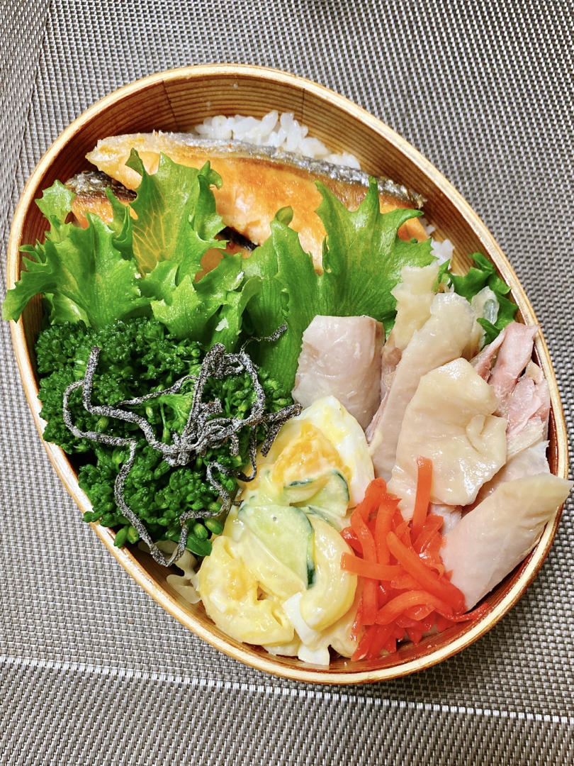 【便当日记】今天的主角有些多:咸鸡、鲑鱼、上海罗宋汤。好热闹的一餐~😍