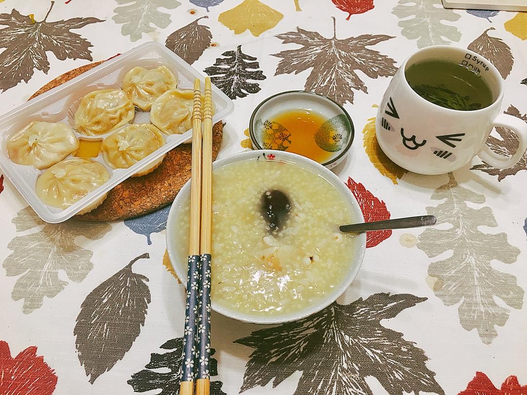 今儿个休息日,小笼汤包+山药小米红枣粥来一发~