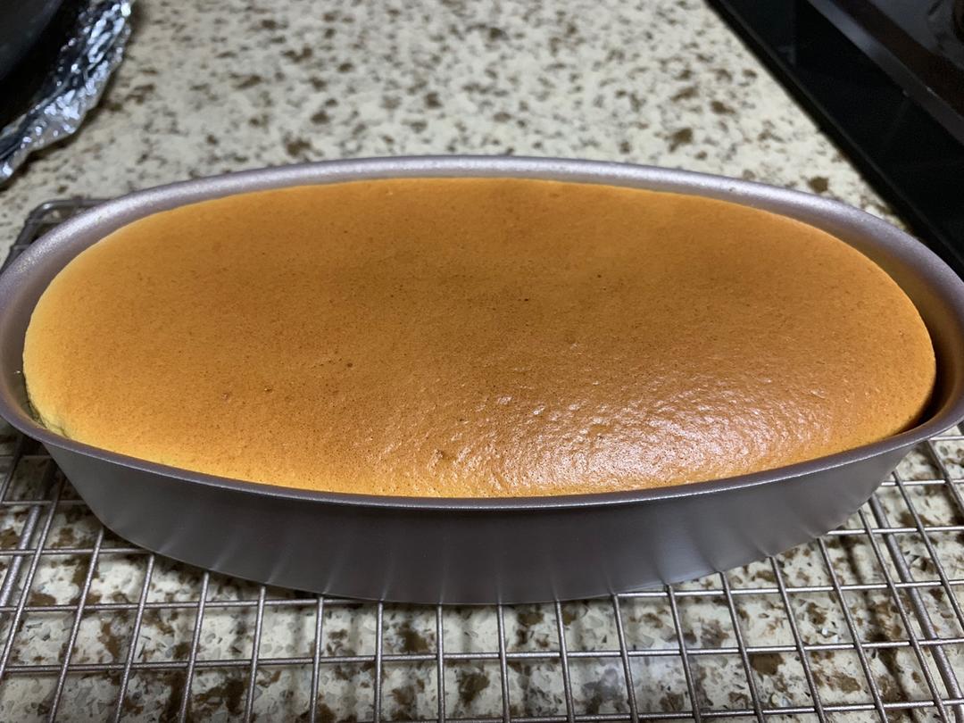 搅拌太均匀久且有些消泡,减了十克糖,未放水130℃/20'有缓慢涨高,转150℃不到3分钟边缘开裂,10分钟中间...