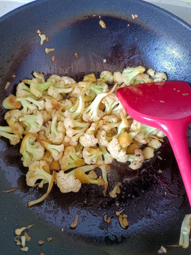 加了胡椒、干辣椒粉之后的花菜风味十足呢!