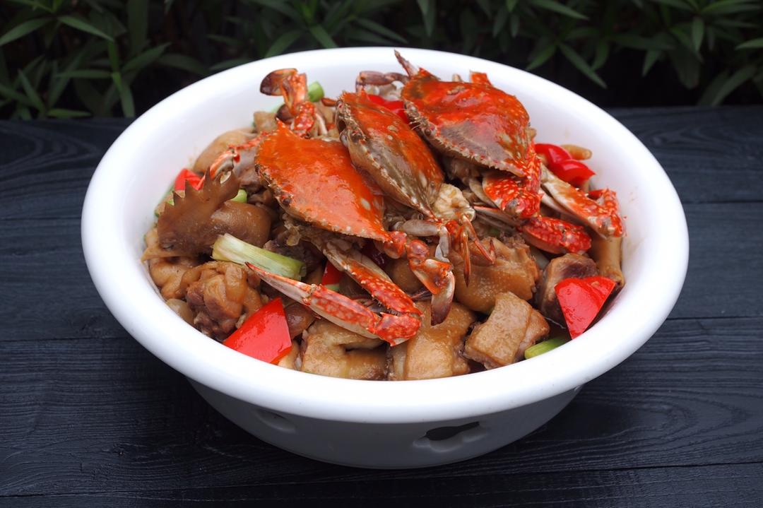 这款花蟹焖鸡里加了猪蹄筋,更有滋味哦