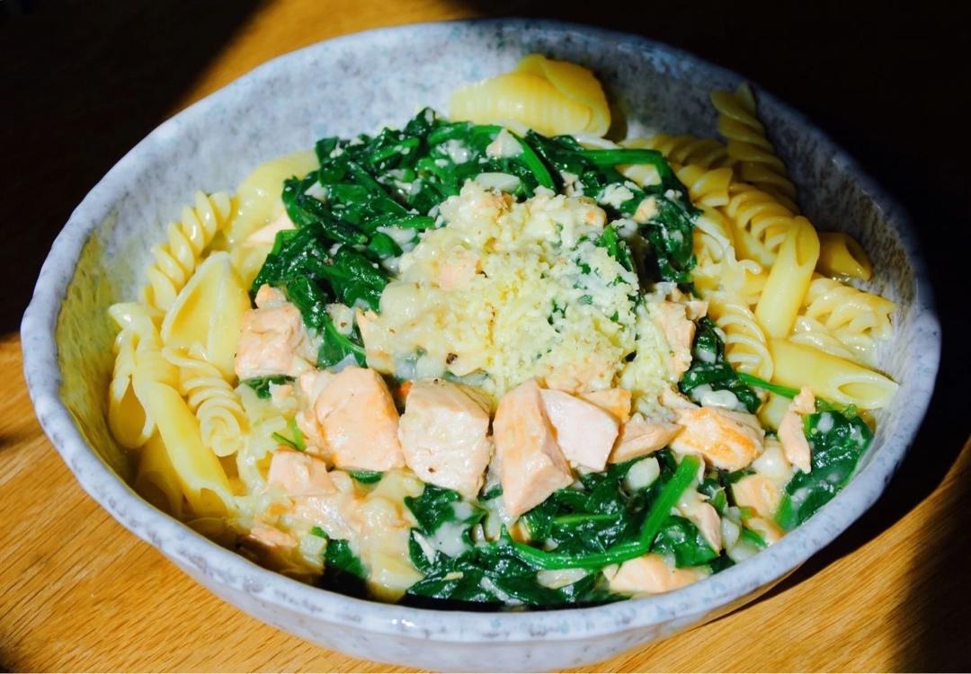今天做了三文鱼意面