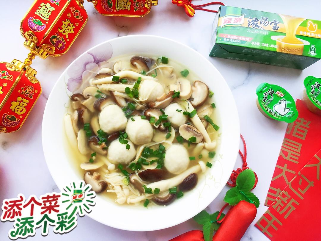 团团圆圆—鲜菇圆子浓汤。这道菜不用过油直接水煮,加入一块家乐浓汤宝,撒点盐就能出锅,鲜极了。我妈发话了这道菜必须上年夜饭...