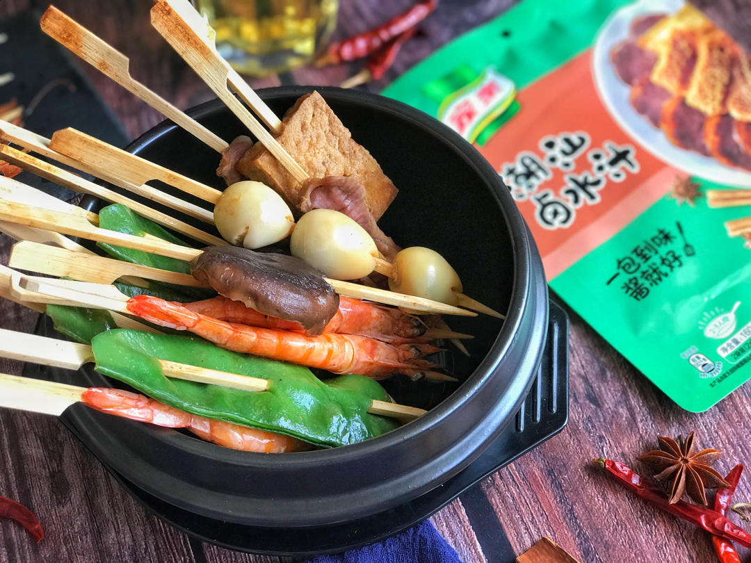想吃卤水串串了,现在真的是很幸福,一包家乐卤水调料,只需要按比例兑水,在家就可以做出正宗口味的卤水串串啦🍢#午餐•202...