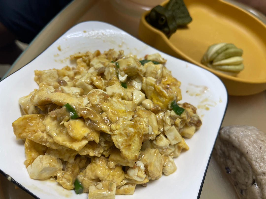 今天男朋友下厨,太好吃了!肉汁和豆腐的汁水被鸡蛋完美地融合在了一起!我爱我的男朋友!