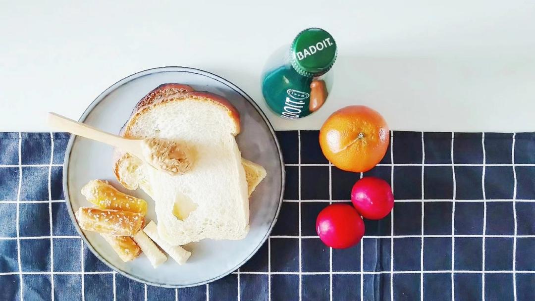 花生酱空气白吐司+奶酪香酥条+李子橘子+天然气泡水