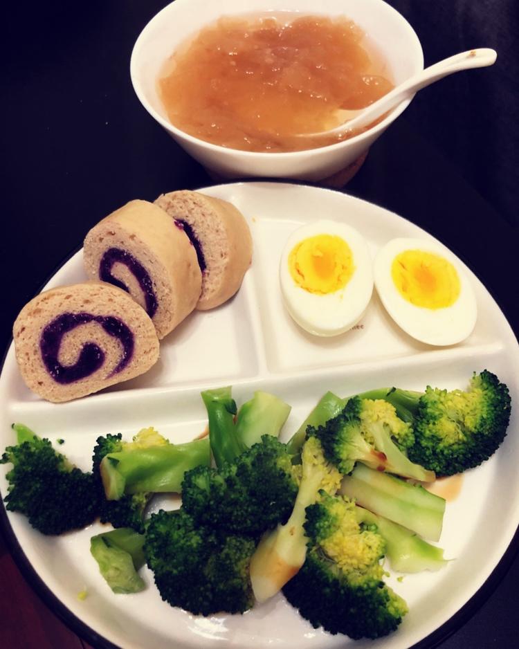 周末也要好好吃早饭,吃完去健身房练起来!昨晚试着做了全麦馒头,刚好家里有煮熟的紫薯,顺手做了带花纹的馒头,也是好看又好吃...