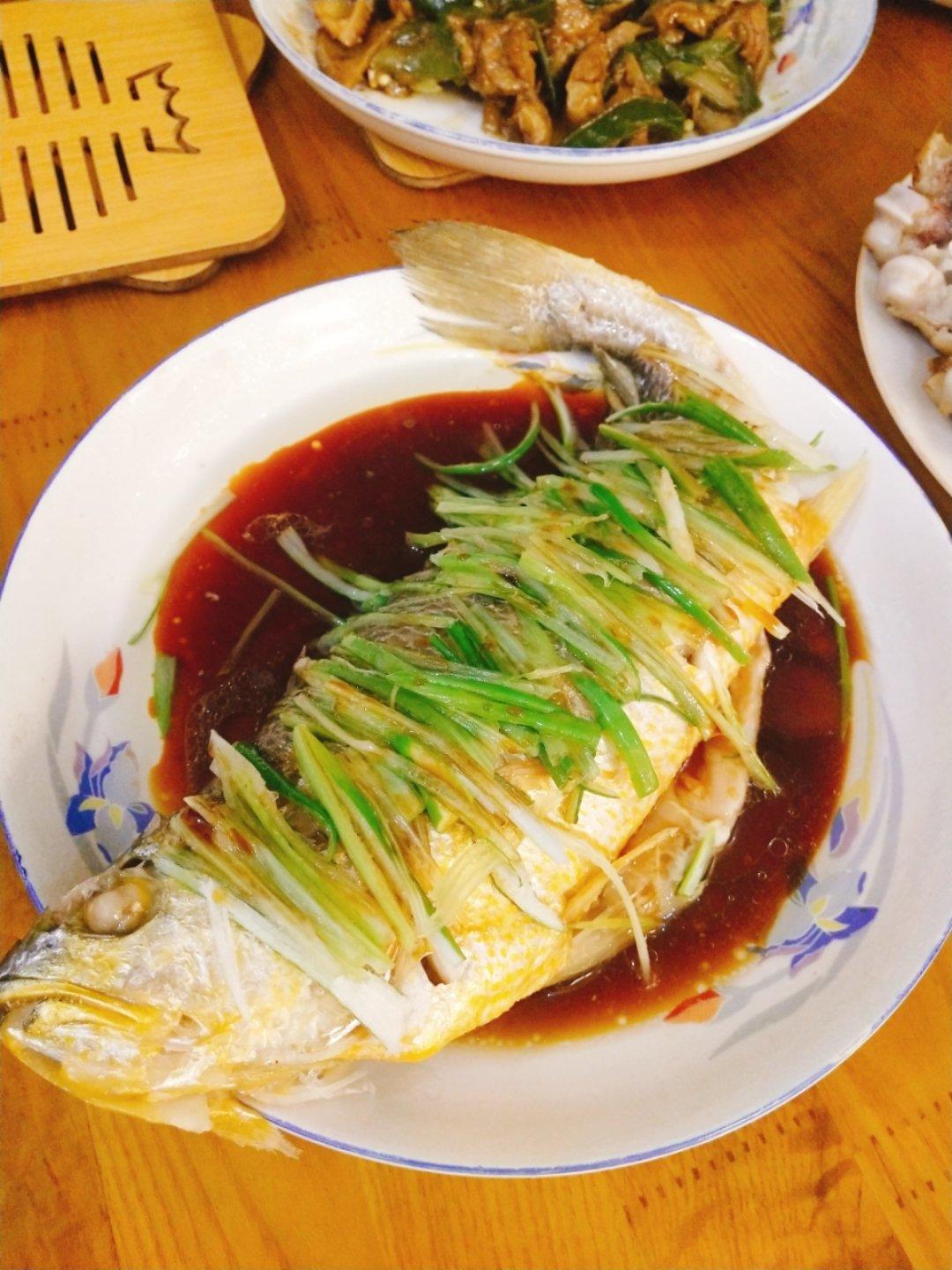 第一次尝试做清蒸黄花鱼。爸妈,老公,哥哥表示很好吃(´▽`ʃƪ)成功~耶耶耶耶